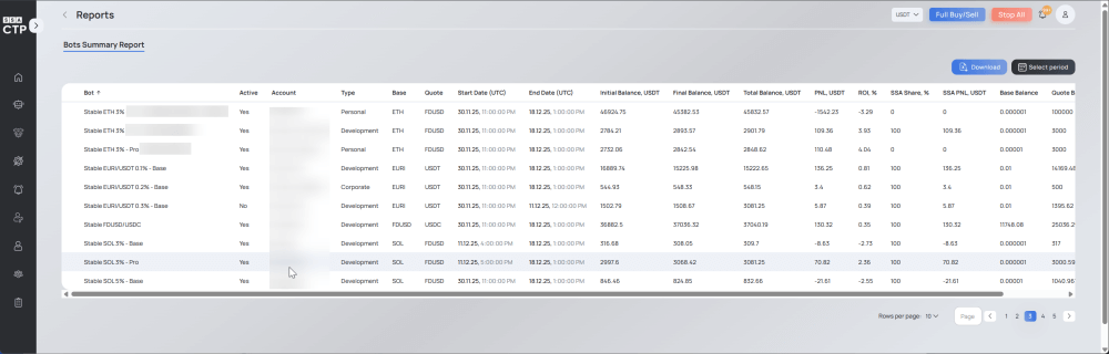 We introduced a new reporting system in the admin panel. It provides statistics for all bots within a selected time period, including how bots behaved and how much they earned or lost. This makes it easier to analyze bot performance, compare results, and spot patterns over time.
